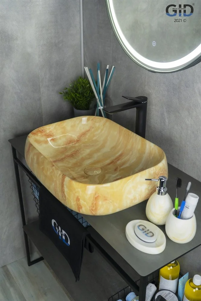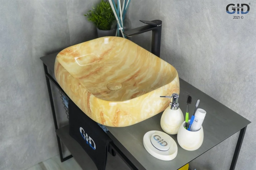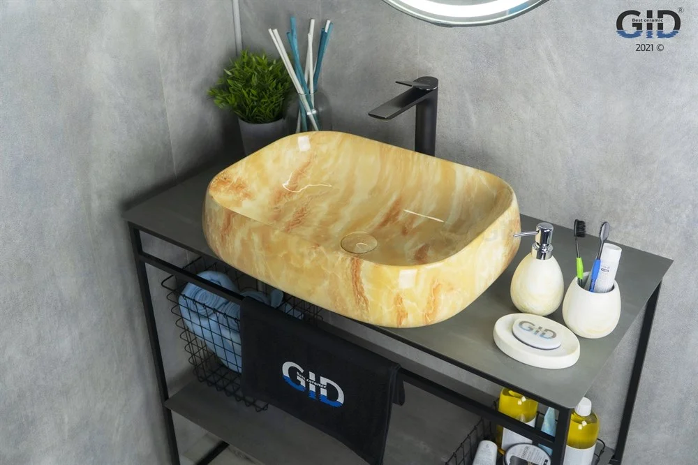 Раковина Gid Mnc185 54422 накладная под камень глянцевая 56x42x14