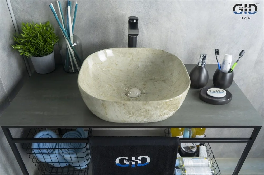 Раковина для ванной Gid Mnc545 монтируется на столешницу или мебель.