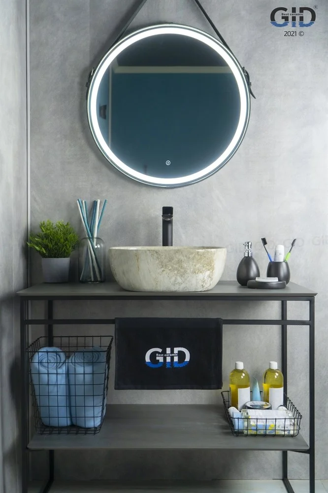 Керамическая дизайнерская раковина Gid Mnc545 покрыта каменной фактурой серых оттенков путём современных высокотехнологических процессов.
