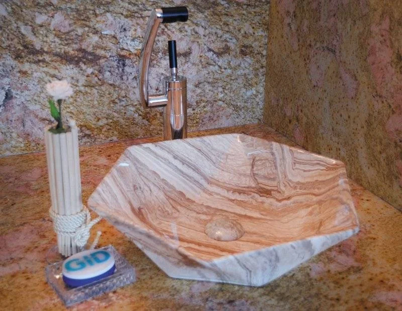 Керамическая дизайнерская раковина Gid Mnc607 покрыта каменной фактурой коричневых оттенков со светлыми прожилками путём современных высокотехнологических процессов.