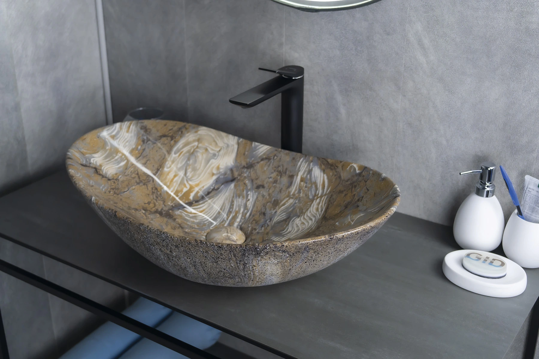 Серия Lago овальной формы — это испанское качество, соответствующее современным европейским требованиям. Раковина накладная GiD Mnc811T— стильная и современная модель, изготовленная из высококачественной керамики с глянцевой поверхностью, создающей эффект натурального камня. Её овальная форма и минималистичный дизайн идеально подходят для ванных комнат в любом стиле, от классического до современного. Модель предназначена для накладной установки на столешницу, что позволяет подчеркнуть изысканность интерьера. Отсутствие отверстия под смеситель позволяет выбрать любую модель настенного или встроенного смесителя.