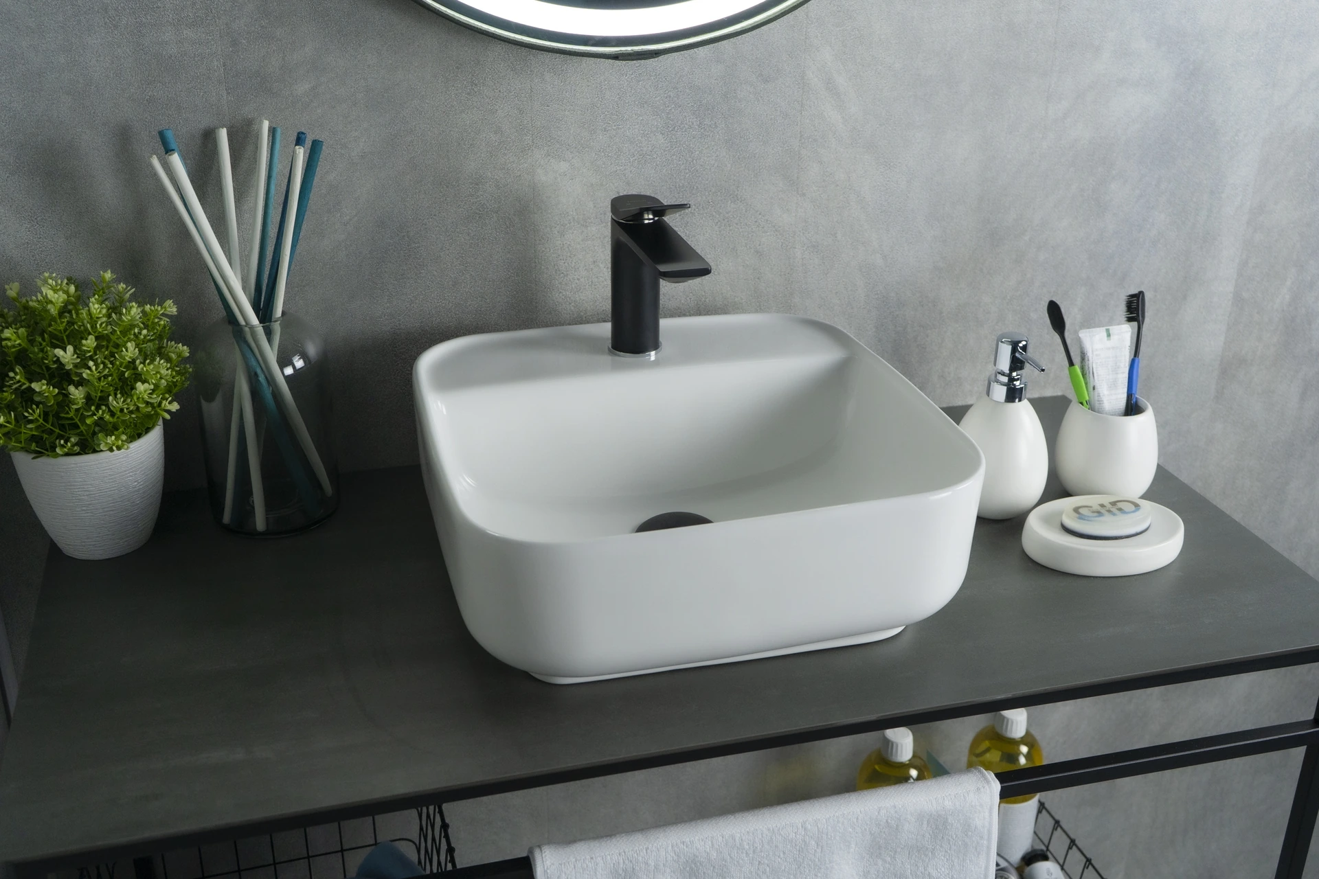 Серия Geometrico с прямоугольной формой: стиль и практичность с испанским качеством и европейскими стандартами. Раковина накладная N9044 - это стильная модель, выполненная из высококачественной мелкопористой керамики с белым глянцевым покрытием, что обеспечивает долговечность и легкость в уходе. Квадратная форма придает ей утонченность и элегантность, а эргономичная чаша удобна для повседневного использования. Накладная конструкция позволяет легко установить раковину на столешнице, предоставляя дополнительное пространство вокруг. Оснащена отверстием под смеситель, что делает её удобным выбором для современной ванной комнаты.