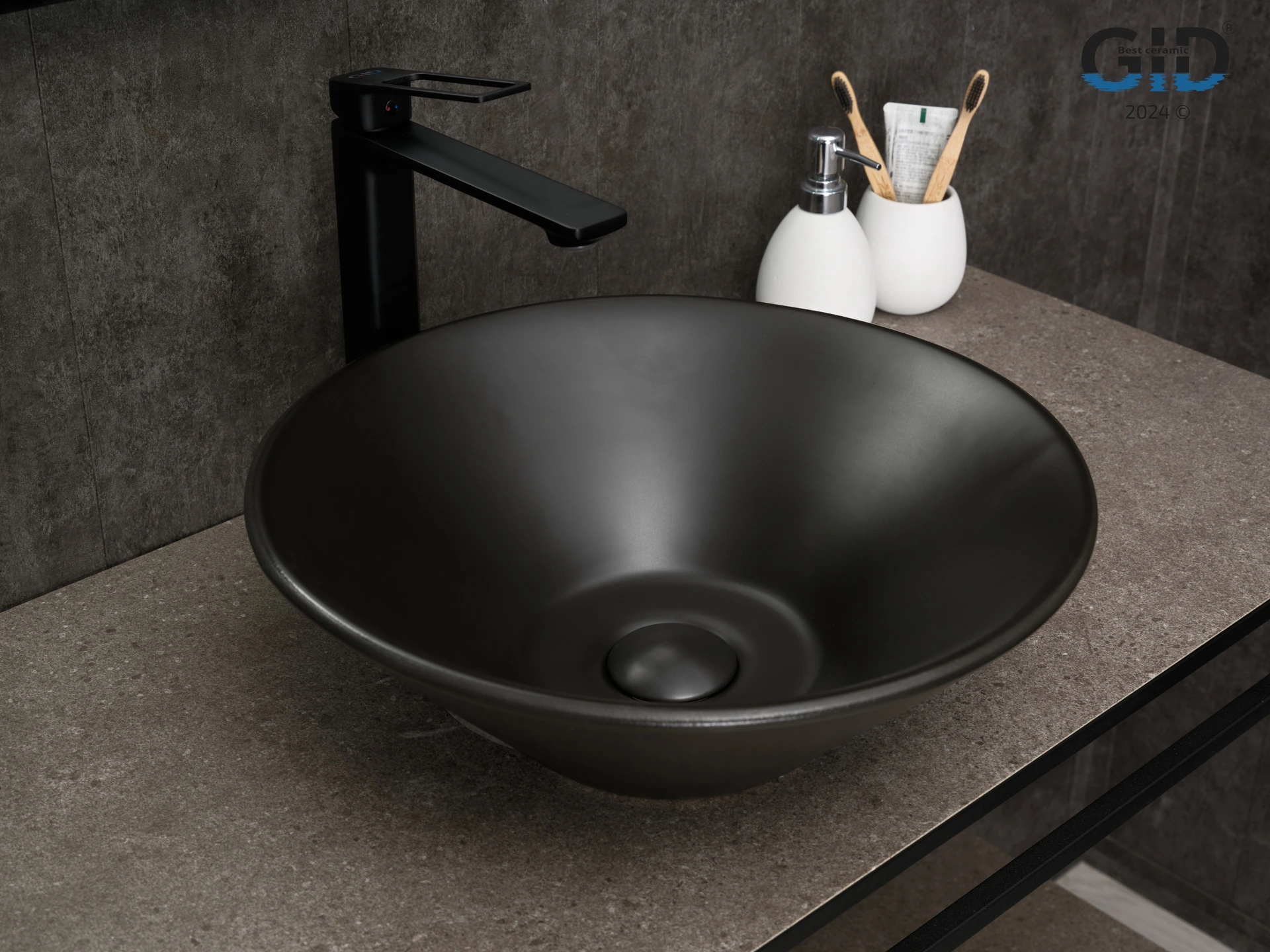 Раковины серии Esfera с круглой чашей — это эталон европейских стандартов и испанского мастерства. Раковина накладная GID N9102bg — идеальный выбор для тех, кто ценит стиль и минимализм в интерьере. Матовая черная керамика с графитовым покрытием придаст вашей ванной комнате современный и неповторимый акцент. Круглая конусообразная форма создает ощущение легкости и гармонии, визуально расширяя пространство. Накладная конструкция не только упрощает монтаж, но и позволяет сэкономить место на столешнице. Благодаря отсутствию отверстия под смеситель раковина позволяет реализовать различные дизайнерские решения по размещению смесителя. Это универсальное и востребованное решение для современных проектов.