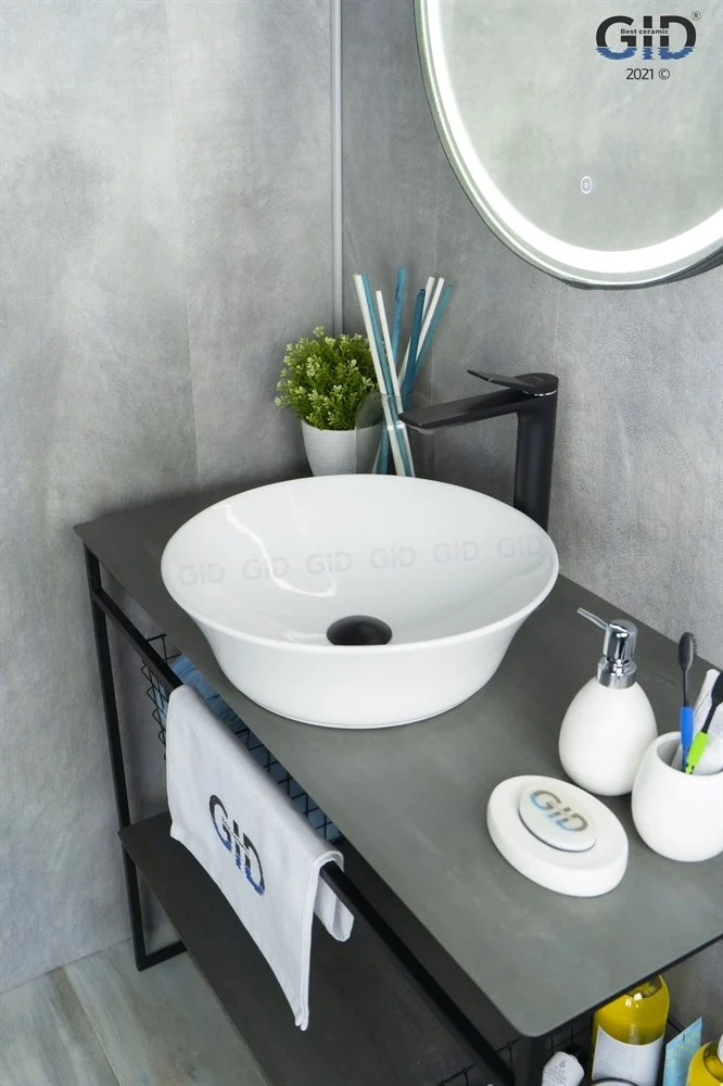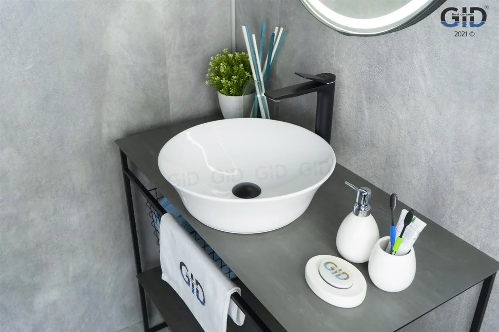 Такие изделия называют накладными. Умывальники, устанавливаемые на мебель, а не крепящиеся к стене, выглядят очень современно и презентабельно. Они способны украсить совершенно любой интерьер. Керамическая раковина Gid N9381 имеет круглую форму.