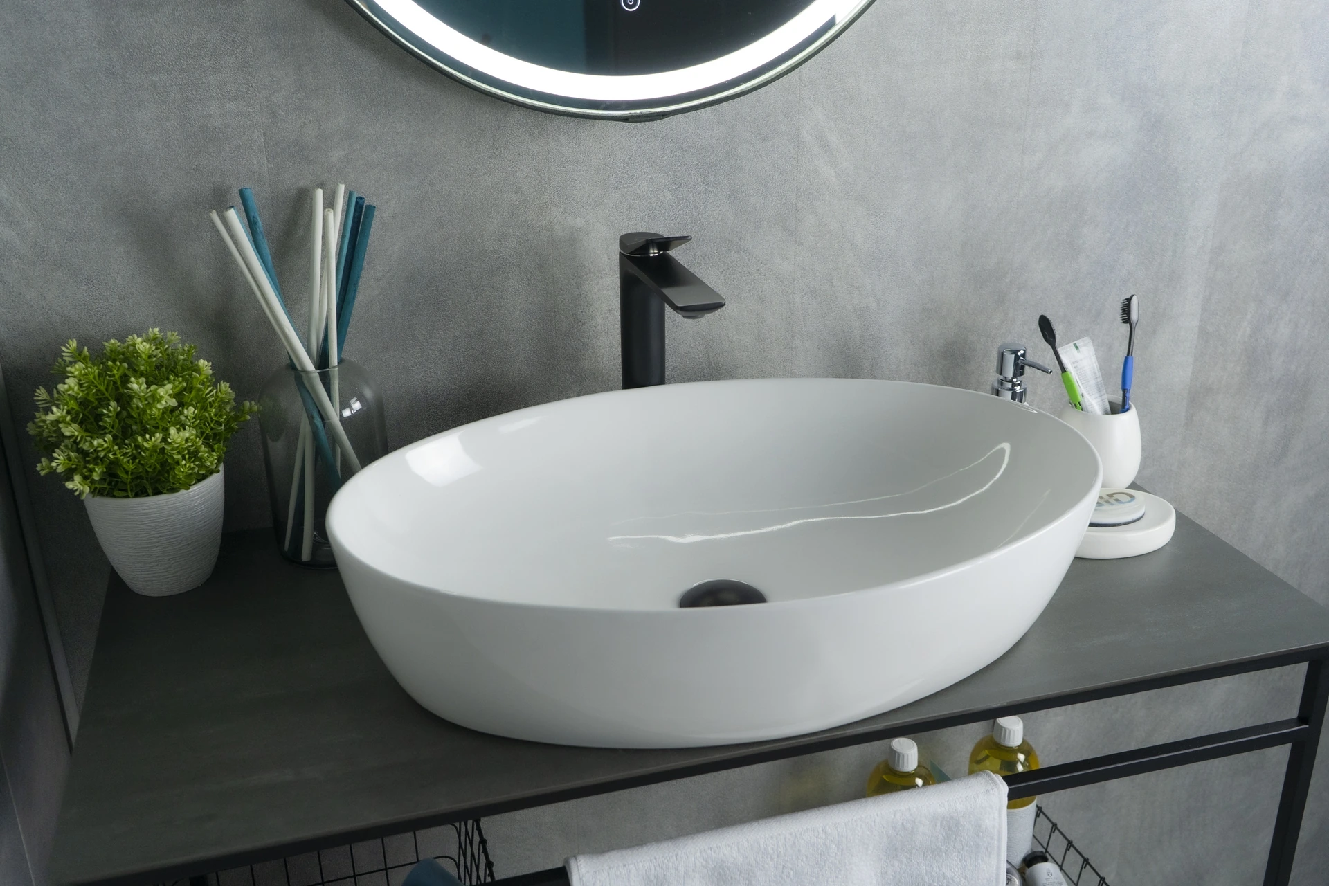 Серия Lago овальной формы — это испанское качество, соответствующее современным европейским требованиям. Накладная раковина GiD N9433 — сочетание элегантного дизайна и практичности для вашей ванной комнаты. Изготовлена из мелкопористой керамики с белым глянцевым покрытием, она придаст интерьеру свежесть и утонченность. Овальная форма обеспечивает оптимальное пространство для комфортного использования. Отсутствие отверстия под смеситель подчеркивает минималистичный стиль, а накладной способ монтажа на столешницу облегчает установку и позволяет создать современный облик ванной комнаты.