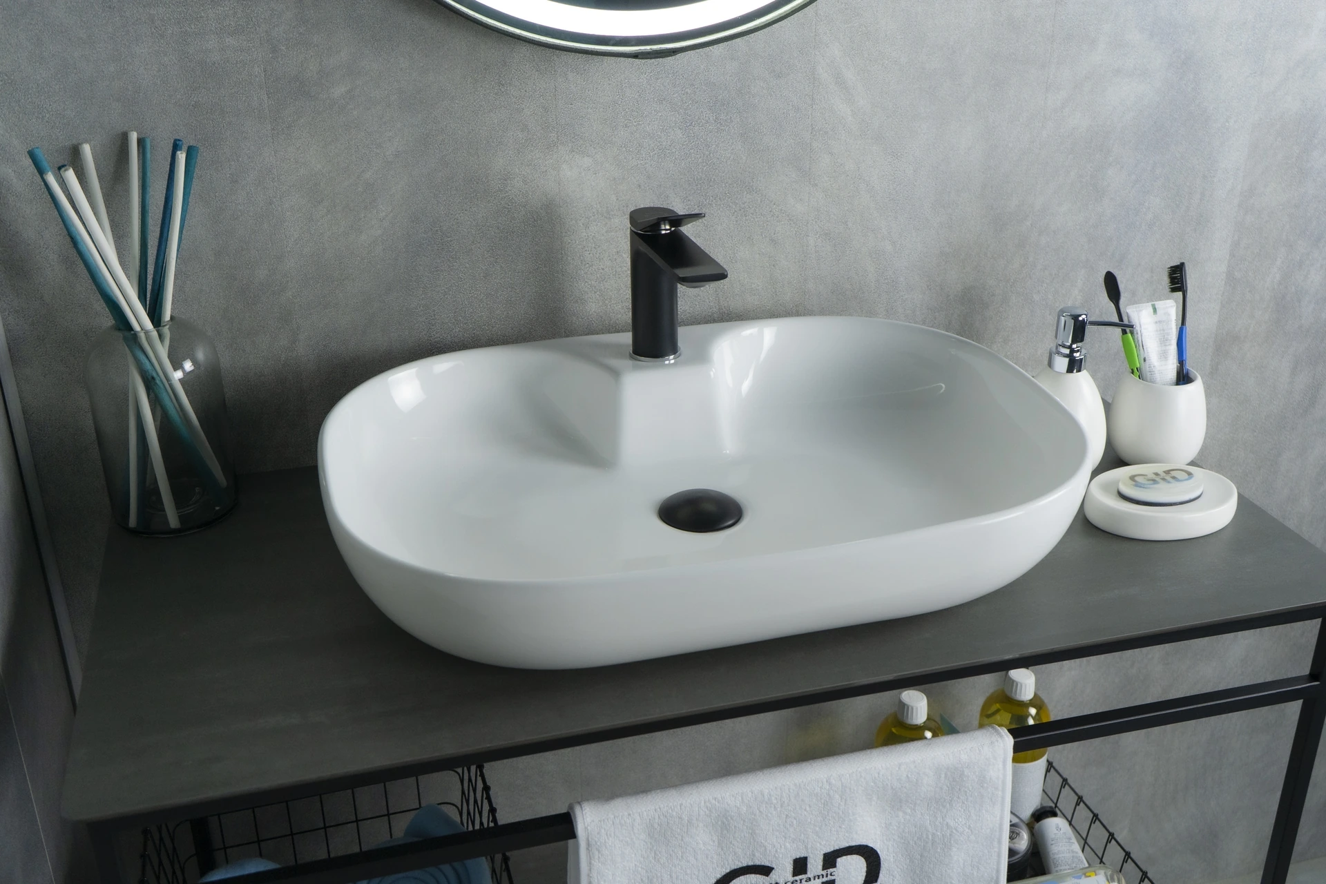 Серия Lago овальной формы — это испанское качество, соответствующее современным европейским требованиям. Раковина накладная N9446b - стильная модель, выполненная из высококачественной мелкопористой керамики с белым глянцевым покрытием, что обеспечивает долговечность и легкость в уходе. Овальная форма придает ей современный и элегантный вид, а эргономичная чаша удобна для повседневного использования. Накладная конструкция позволяет легко установить раковину на столешнице, предоставляя дополнительное пространство вокруг. Оснащена отверстием под смеситель, что делает её удобным выбором для современной ванной комнаты.