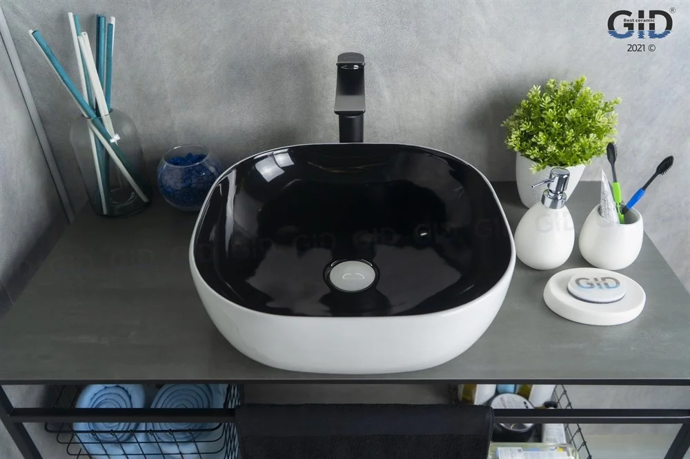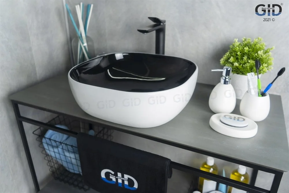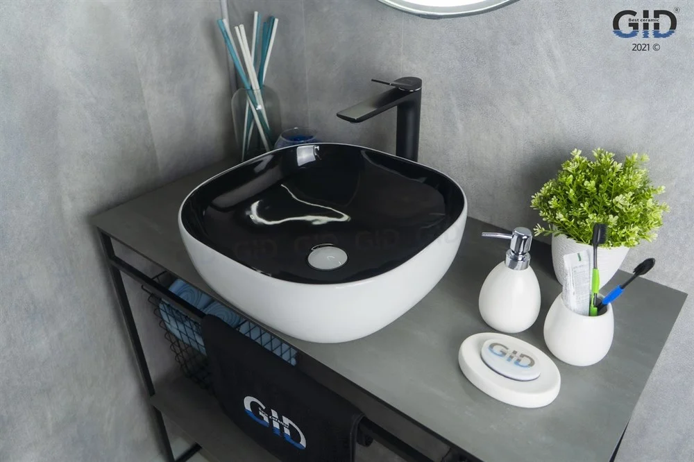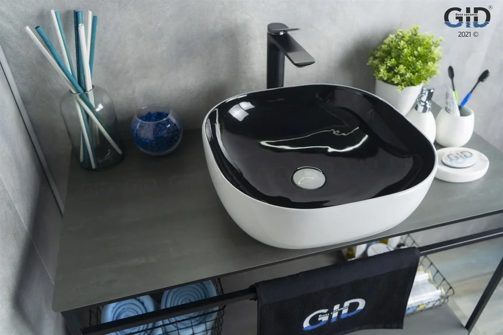 Раковина для ванной Gid Nc360 монтируется на столешницу или мебель.