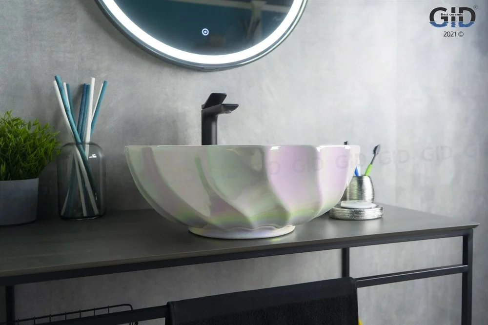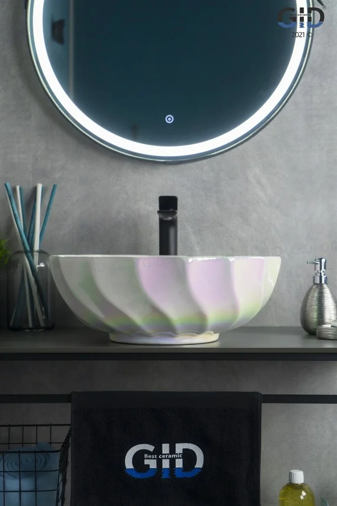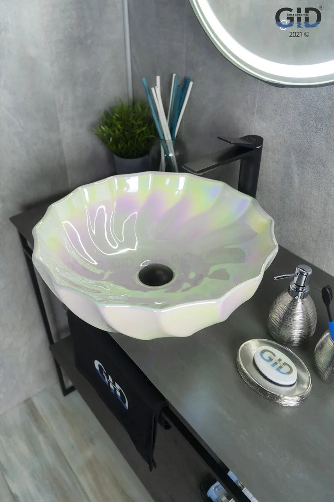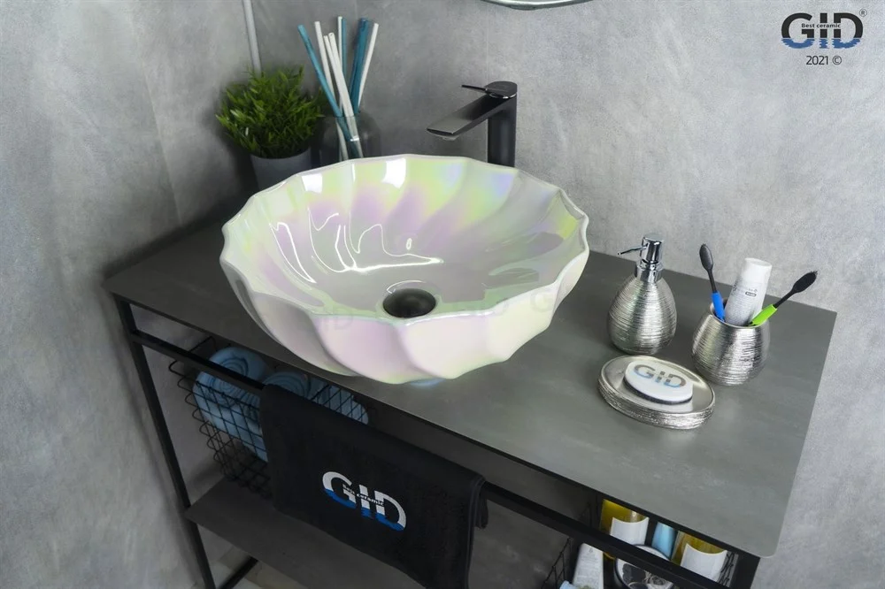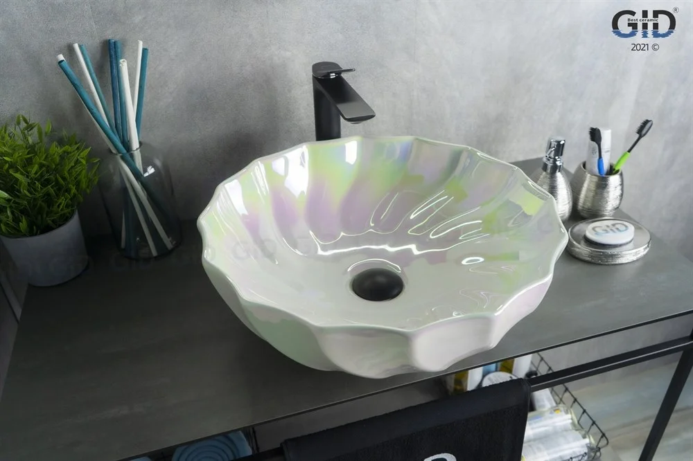 Поверхность дизайнерской раковины Gid Nc423 покрыта жемчужным цветом. Жемчуг - всегда высоко ценится людьми, а её блекс придает раковине очень привлекательный вид.