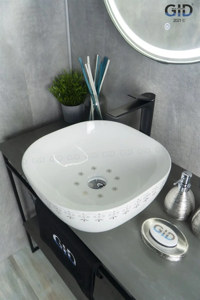 Раковина для ванной Gid Nc440 монтируется на столешницу или мебель.