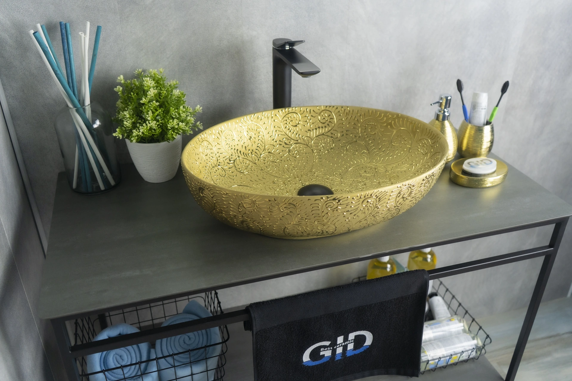 Серия Lago овальной формы — это испанское качество, соответствующее современным европейским требованиям. Раковина GiD Nc444— элегантная накладная модель, изготовленная из высококачественной мелкопористой керамики с роскошным золотистым покрытием. Её овальная форма и изящный цвет придают интерьеру ванной комнаты утончённость и стиль, обеспечивая гибкость в дизайне. Накладной монтаж упрощает установку и дает дополнительное пространство на столешнице.