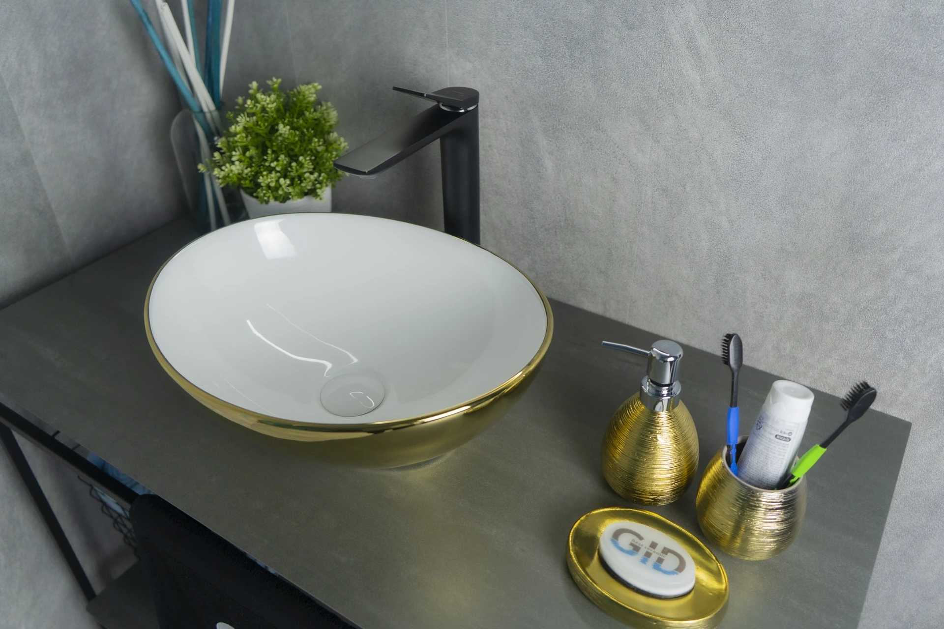 Серия Lago овальной формы — это испанское качество, соответствующее современным европейским требованиям. Раковина накладная GiD Nc999 — уникальная модель в стильном белом цвете с золотистым ободком, созданная для современного интерьера. Её овальная форма гармонично дополняет пространство, создавая акцентный элемент в ванной комнате. Мелкопористая керамика отличает раковину долговечностью, устойчивостью к загрязнениям и простотой в уходе. Благодаря отсутствию отверстия под смеситель раковина позволяет реализовать различные дизайнерские решения по размещению смесителя. Накладной монтаж обеспечивает лёгкость установки и сохраняет максимум пространства на столешнице.