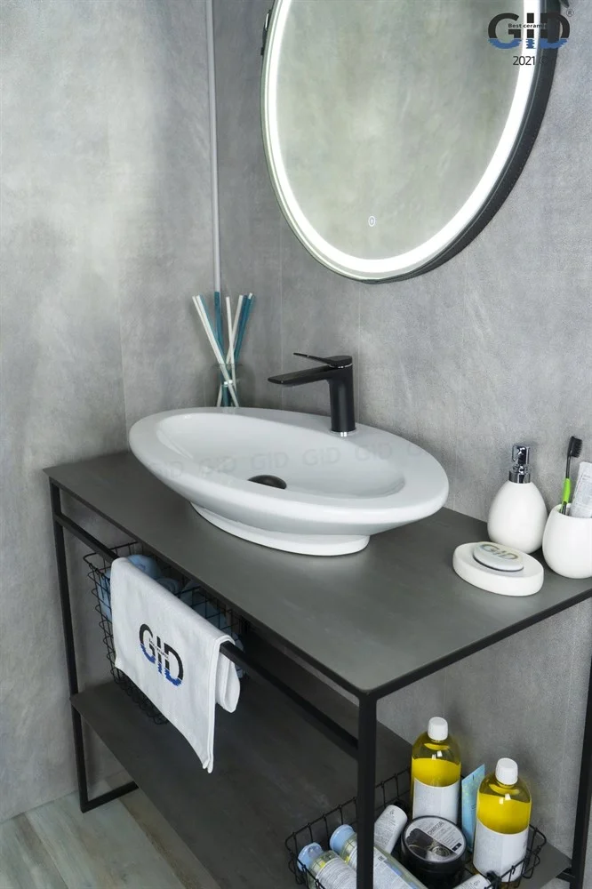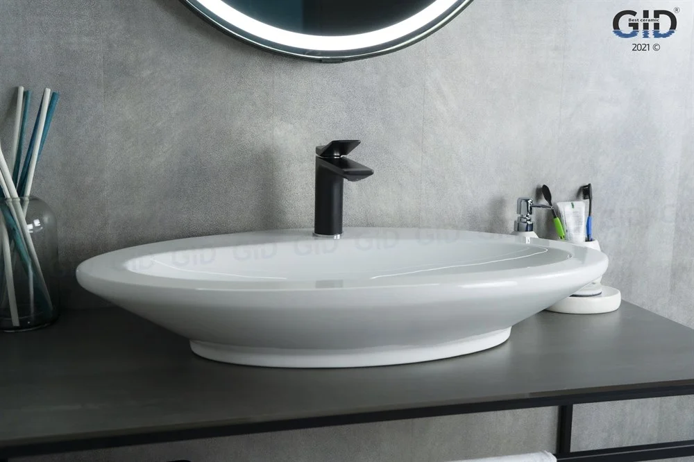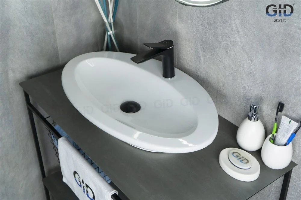 Раковина для ванной Gid Tr422 монтируется на столешницу или мебель.