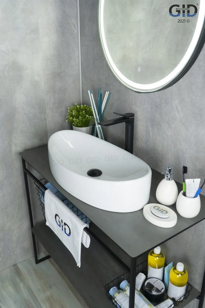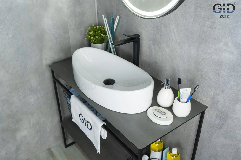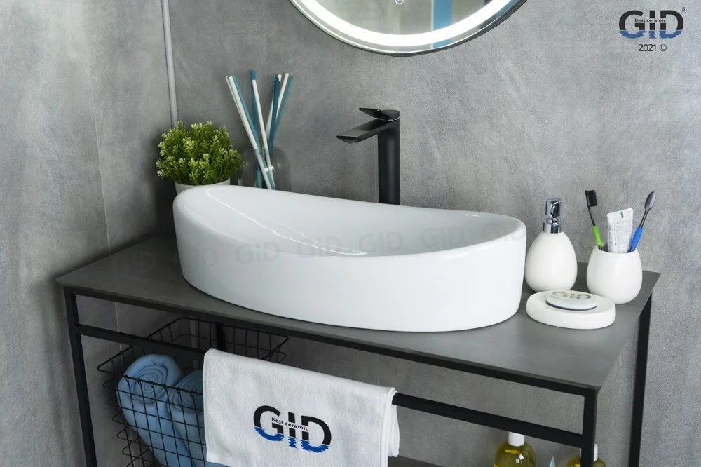 Раковина для ванной Gid Tr4898 монтируется на столешницу или мебель.