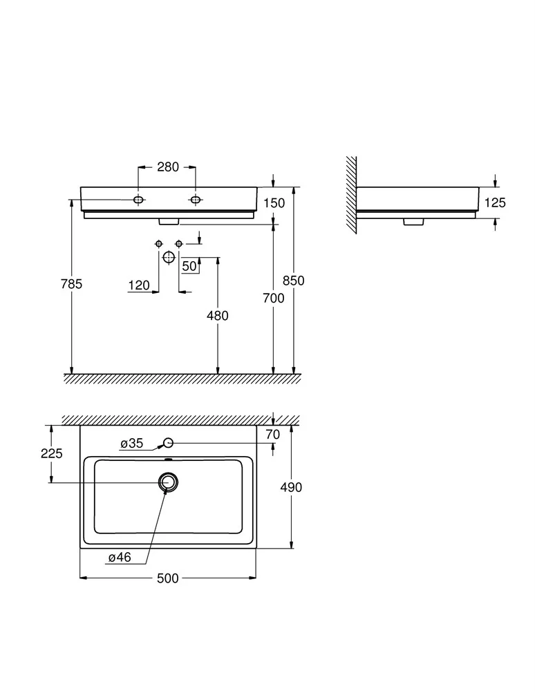 Раковина GROHE Cube Ceramic, подвесная 50 см, альпин-белый (3947400H)