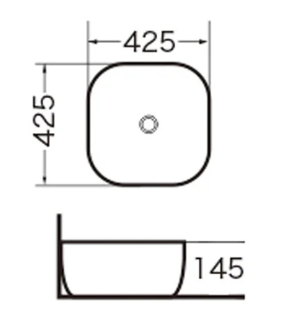 Раковина накладная          Размер: 425 х 425 х 145 мм