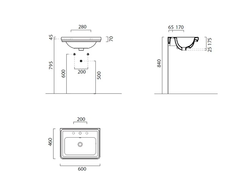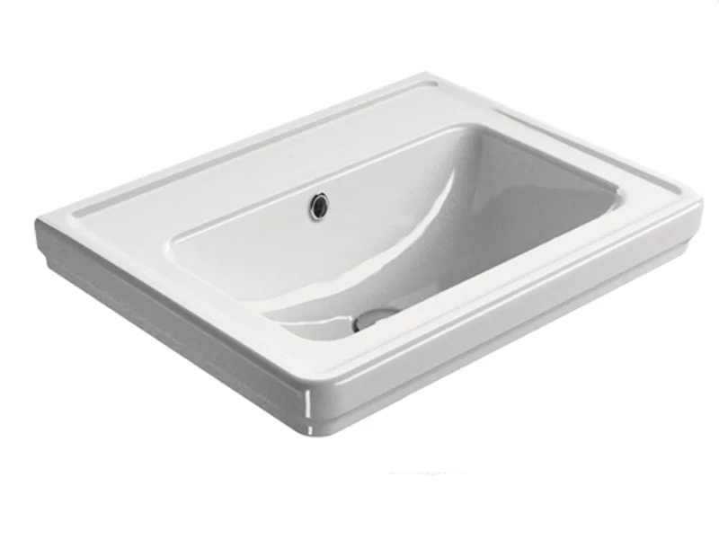 Раковина подвесная GSI CLASSIC 8731111 с одним отверстием для смесителя (предусмотрены три отверстия), с переливом. Установка - подвесная или на колонне. Размер 60х46 см. Цвет - белый. Крепления, колонна и сифон приобретаются отдельно.