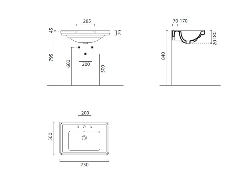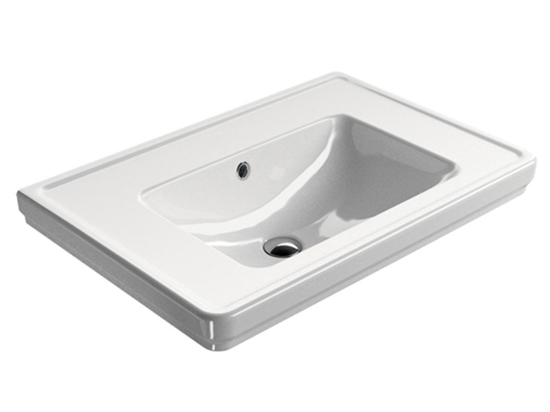 Раковина подвесная GSI CLASSIC 8787111 с переливом, одно отверстие для смесителя, размер 75x50 см. Установка - навесная или на колонне. Цвет - белый глянцевый. Крепления приобретаются отдельно.