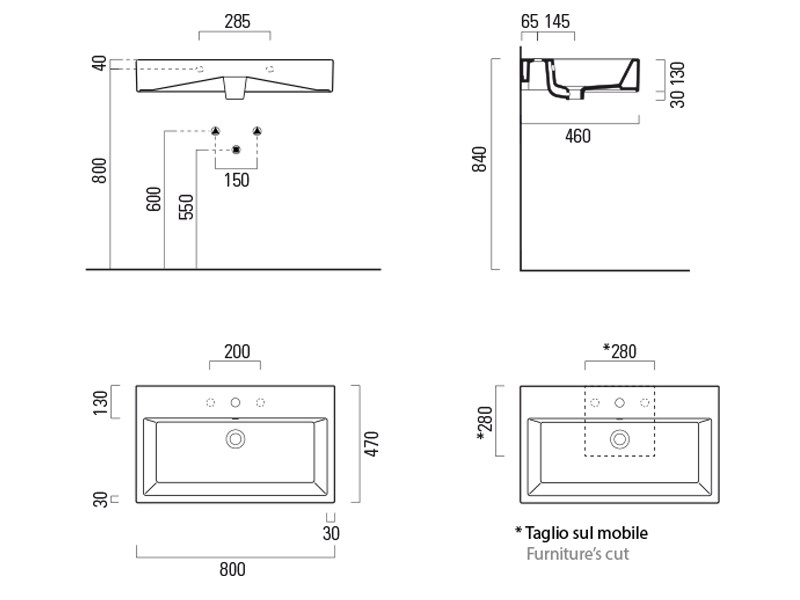 Раковина белая предназначена для смесителя на 1 отверстие. Установка - подвесная, накладная. Размер - 80х47х16 см. Цвет - белый.