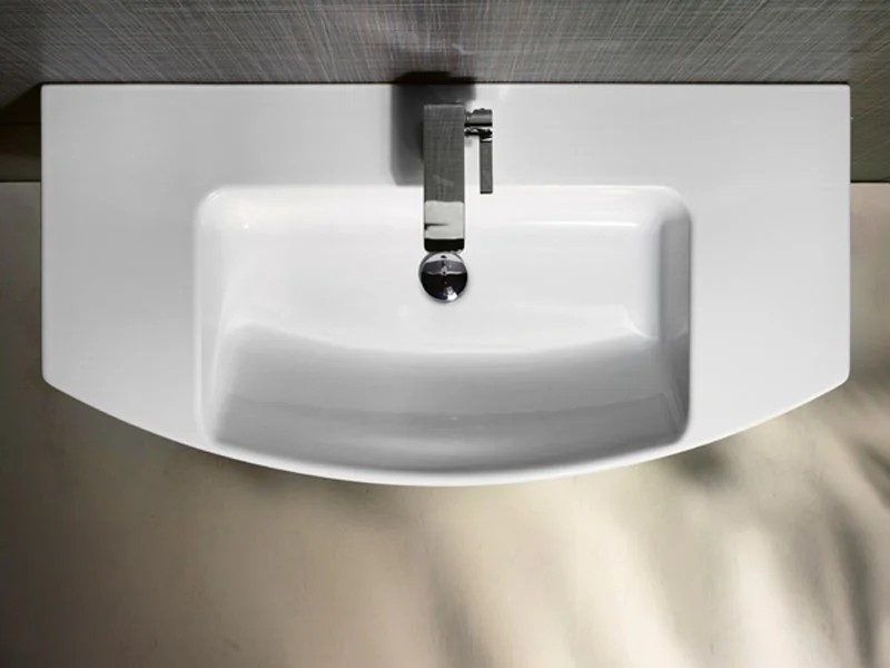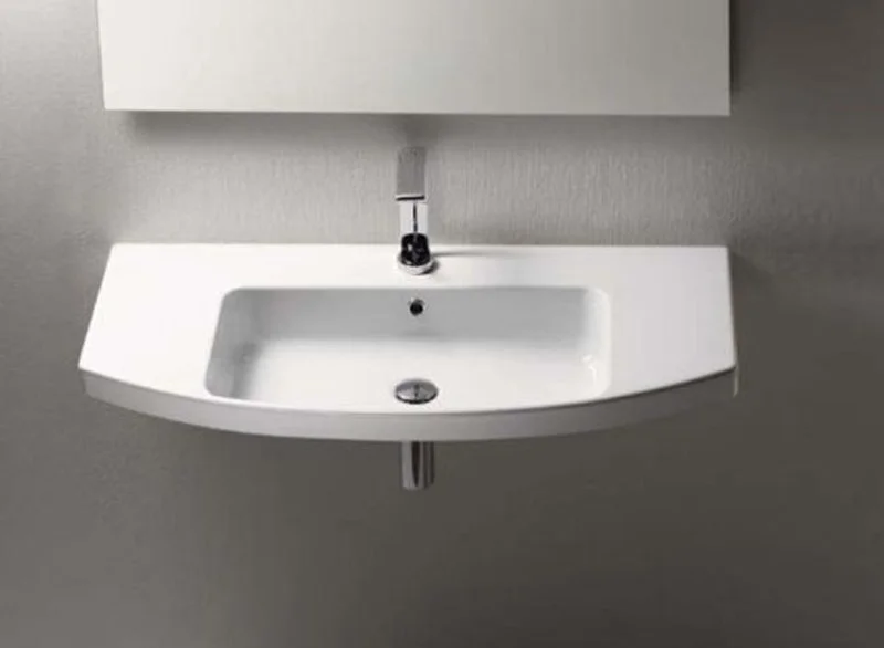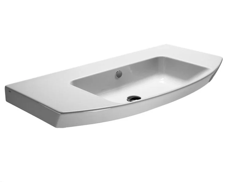 Раковина 100 с переливом, с одним отверстием для смесителя. Установка - подвесная или встроенная. Размер - 100х50х18 см. Цвет - белый.