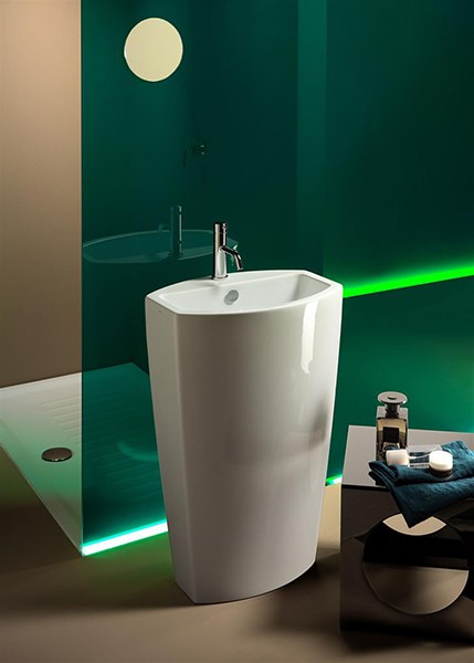 Установка в центре комнаты со сливом в пол (крепеж включен). Размер - 56х40х85 см. Цвет - белый глянцевый.