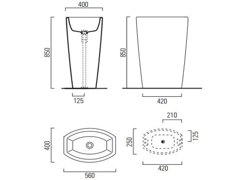 Раковина напольная без перелива, отдельностоящая, слив в пол, цвет белый (крепеж включен).