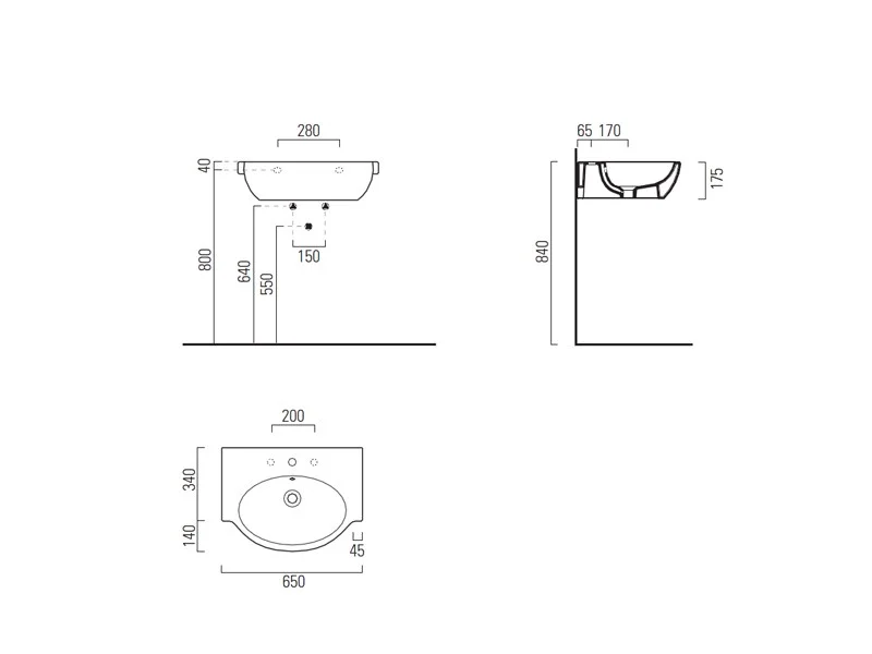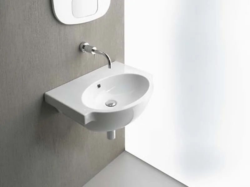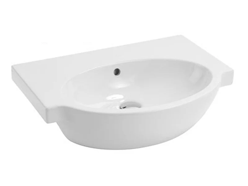 Раковина с одним отверстием для смесителя (предусмотрены три отверстия). Установка - подвесная. Размер - 65х48х17 см. Цвет - белый.