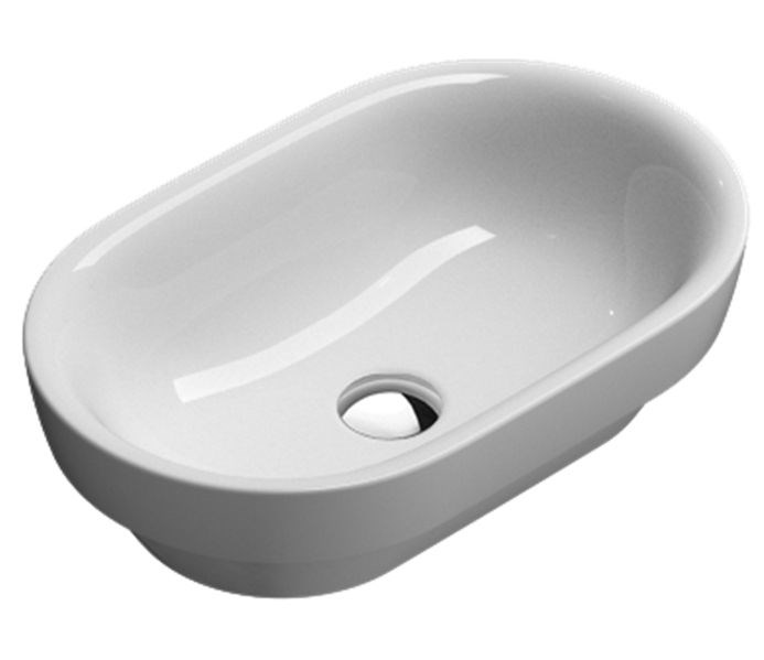 Раковина накладная без перелива, смеситель со стены или со столешницы. Установка - накладная или встроенная. Цвет белый.