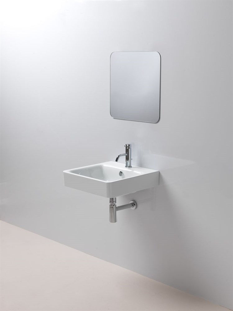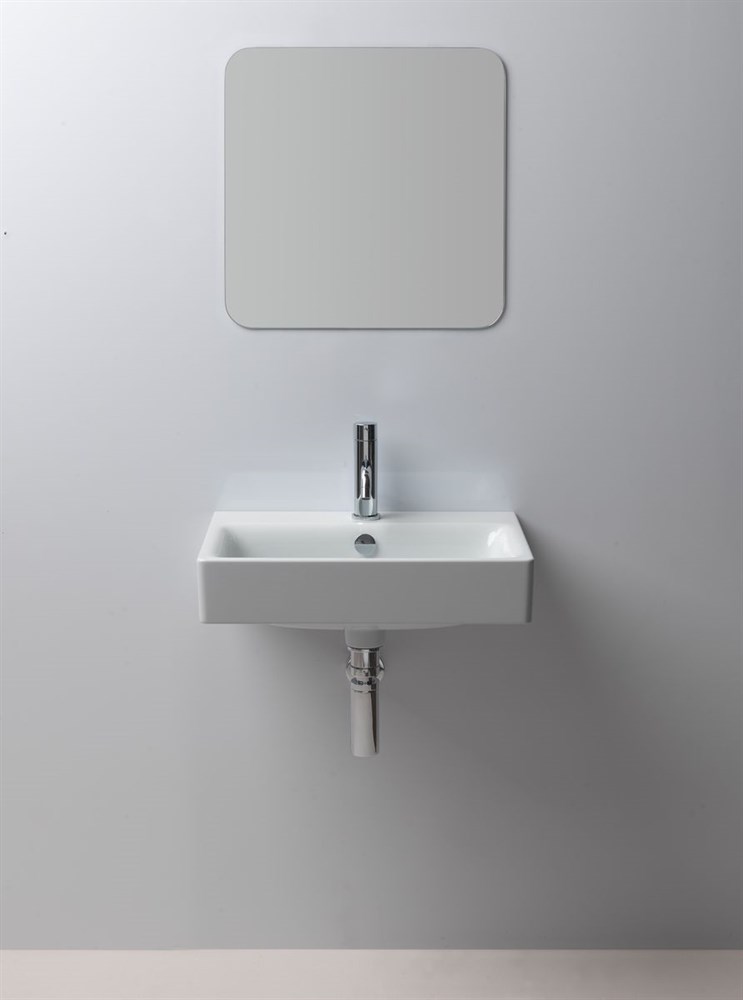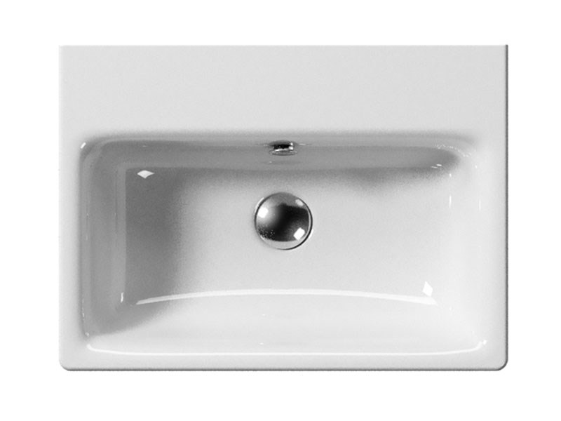 Раковина с переливом, смеситель на 1 отверстие. Размер 55x40х19 см. Установка навесная или накладная. Цвет-белый глянцевый.