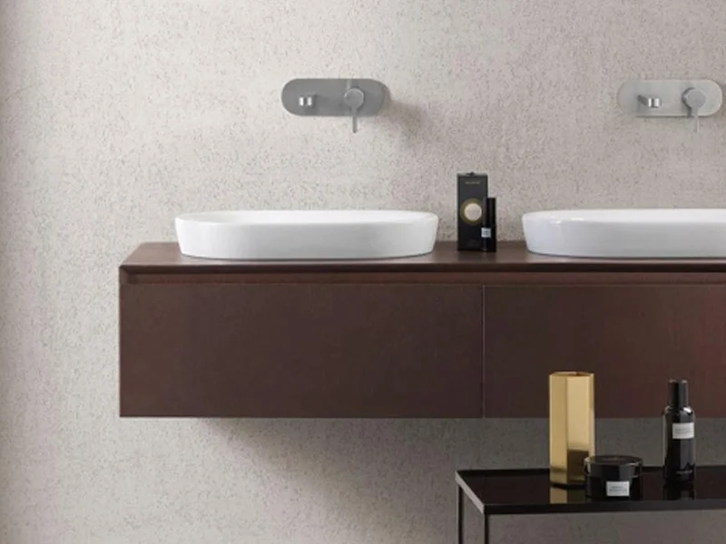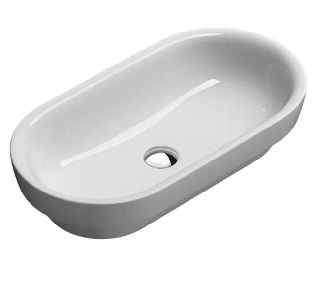 Раковина накладная без перелива, смеситель со стены или со столешницы. Установка - накладная или встроенная. Цвет белый.