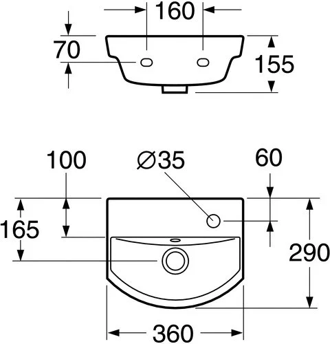 Размер: 36х29х15,5см. Подвесная раковина Logic. отверстие под смеситель справа без комплекта крепления с переливом