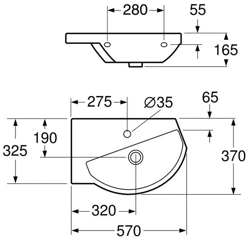 Раковина Gustavsberg Logic 5198 51989901 угловая, чаша справа, 57x37 см