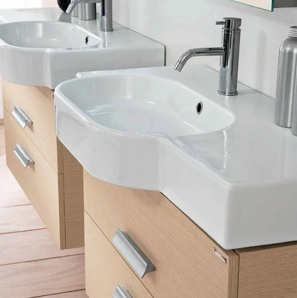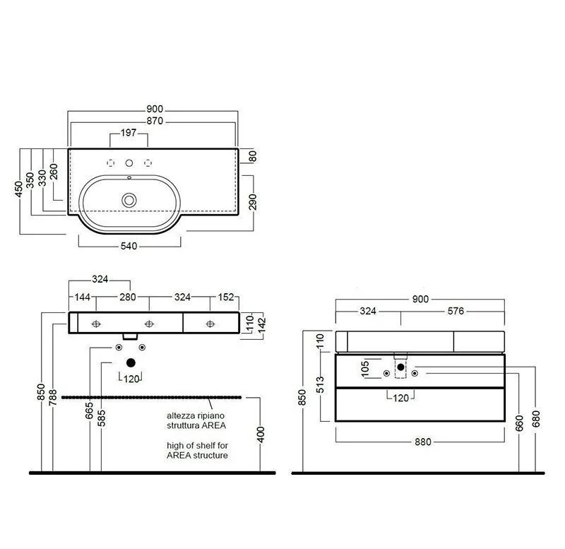 Раковина универсальная на 90 см HATRIA AREA Y0U901, левая чаша. Умывальник поставляется под смеситель на одно, по запросу на три отверстия; с отверстием перелива. Может дополняться дополнительной керамической полкой с полотенцедержателем и без, подвесной полкой под раковину. Производитель Италия "HATRIA".