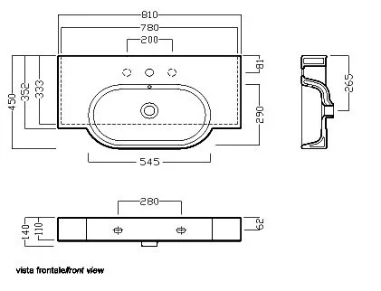 Hatria Area Y0UP01 - Раковина для ванной комнаты 81*45 см | универсальная, с одним отверстием для смесителя, с отверстием перелива, настенный монтаж, возможен монтаж на плоскость столешницы и на мебельное подстолье.