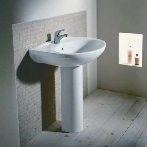 Раковина подвесная на 60 см HATRIA CANNES 2012 Y0T901. Умывальник с отверстием перелива; одно отверстие под смеситель готово. Устанавливается на стену с помощью крепежа. Дополнительно комплектуется полуколонной Y49601 или колонной YM7601.
