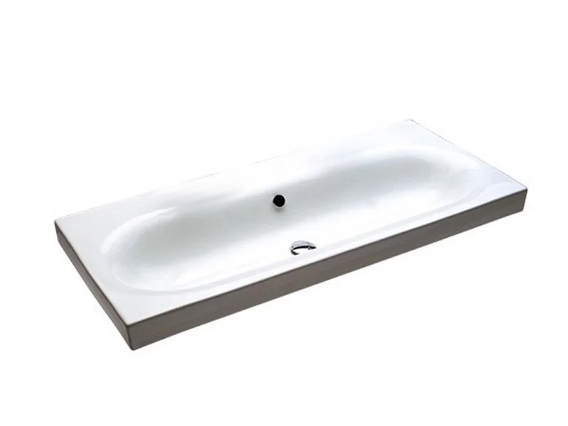 Раковина подвесная на 110 см HATRIA DAYTIME Y0YQ01. Умывальник с отверстием перелива, без отверстия под смеситель, три центральных отверстия намечены. Устанавливается на стенах, столешницах, подстольях, мебели и специальных консолях.