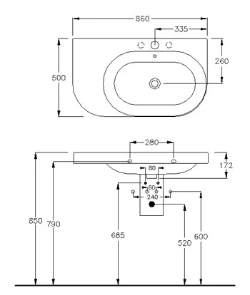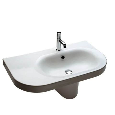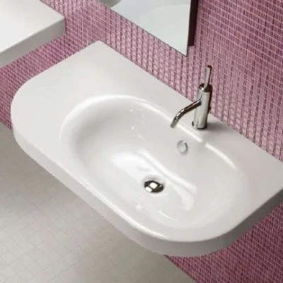 HATRIA Daytime Y0YZ01 - Раковина для ванной комнаты, с левым крылом 86*50 см, чаша справа, с отверстием перелива, одно отверстие для смесителя. Монтаж: настенный, на мебельное подстолье, врезка в столешницу, на консоль (напольная консоль - Y0PB, Y0PC, подвесная консоль - Y0PD), консоль приобретается отдельно - см. в рекомендуемых товарах.