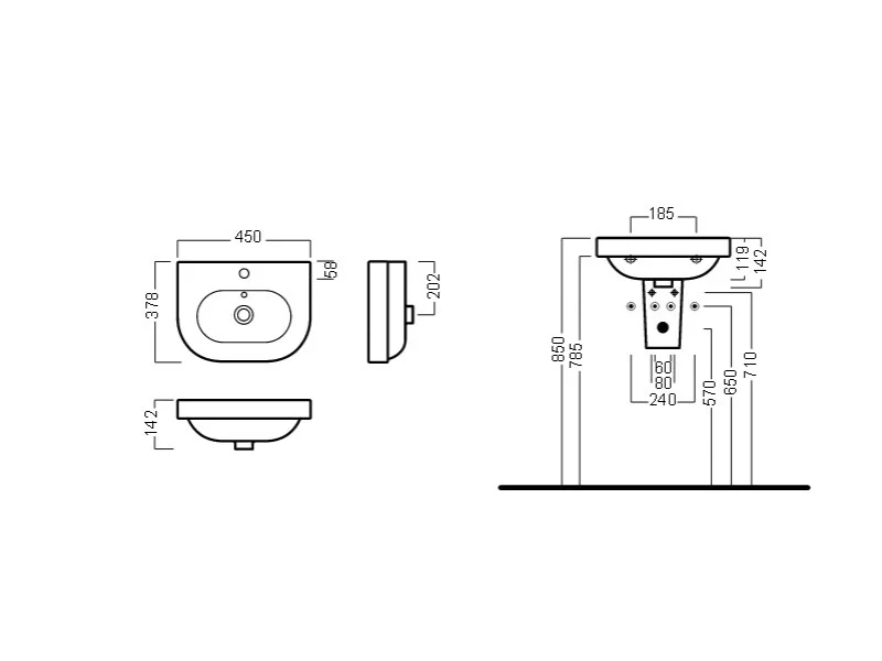 Раковина подвесная на 45 см HATRIA DAYTIME YXBM01. Умывальник с одним отверстием под смеситель, с отверстием перелива. Монтируется на стену, дополнительно можно комплектовать с полуколонной арт. YXCQ01. Укомплектована крепежными элементами.