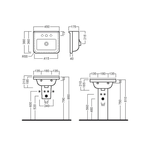 Раковина подвесная на 45 см HATRIA ERIKA PRO YXBJ01. Умывальник с отверстием перелива; одно отверстие под смеситель готово. Устанавливается на стену с помощью крепежа, также возможно встраивать в мебель. Дополнительно комплектуется полуколонной YXBK01 или колонной YXHE01.