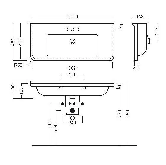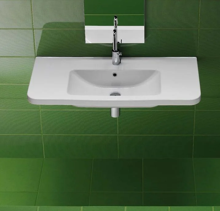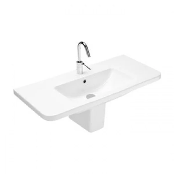 Раковина подвесная на 100 см HATRIA ERIKA PRO YXEA01. Умывальник с отверстием перелива; одно отверстие под смеситель готово. Устанавливается на стену с помощью крепежа, также возможно встраивать в мебель. Дополнительно комплектуется полуколонной YXBK01.