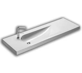 Раковина подвесная на 150 см HATRIA GRANDANGOLO YXF301. Умывальник с отверстием перелива; одно отверстие под смеситель слева готово. Монтируется на стену с помощью крепежей, также возможен встраиваемый в мебель монтаж. Дополнительно комбинируется с керамическими правыми (Y0XL01) и/или левыми (Y0XW01) полками, вешалками для полотенец YAA301, YAA401.