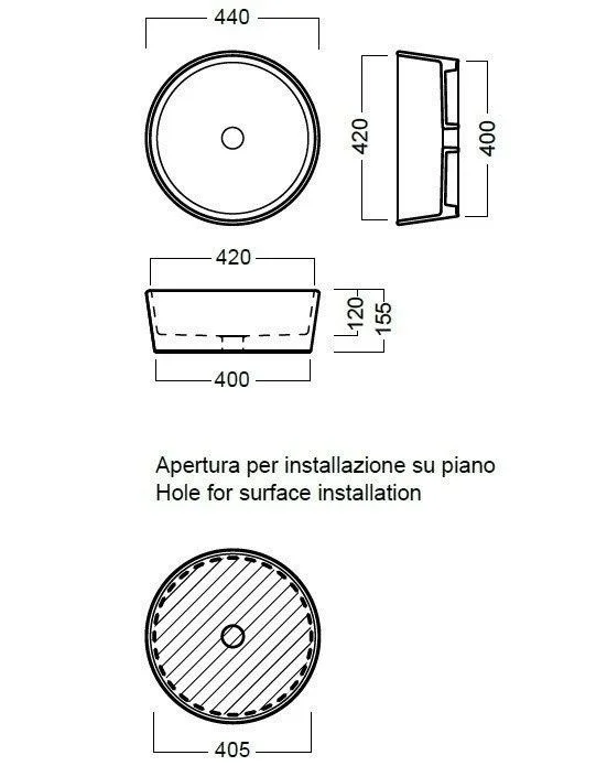 Раковина врезная YXSP01 Hatria Happy Hour 07:15. Без перелива и плоскости под смеситель. Монтаж встраиваемый снизу.