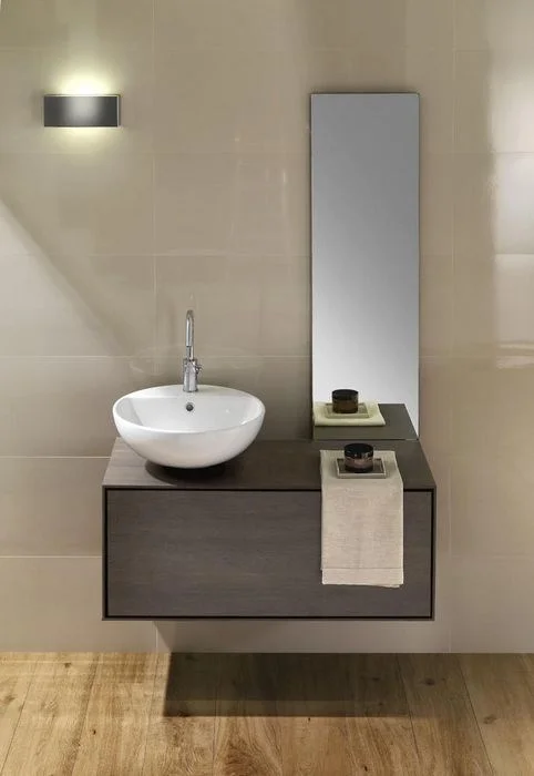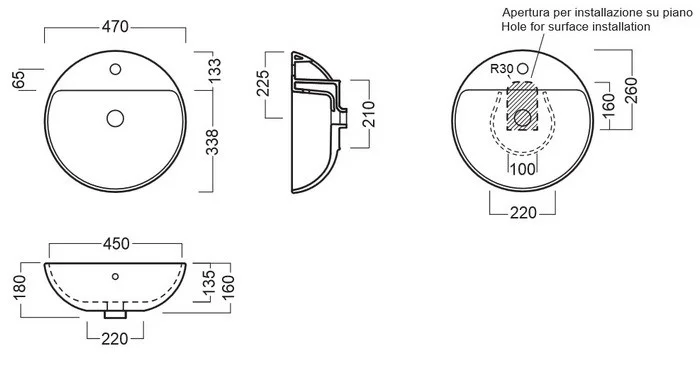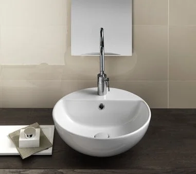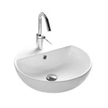 Hatria Happy Hour YXSJ01 03:00: Раковина накладная, монтаж - на плоскость столешницы (сверху), с одним отверстием для смесителя, с отверстием перелива, цвет изделия - белый. Размеры: диаметр ? - 470 мм, высота - 180 мм, высота от плоскости столешницы - 135 мм.