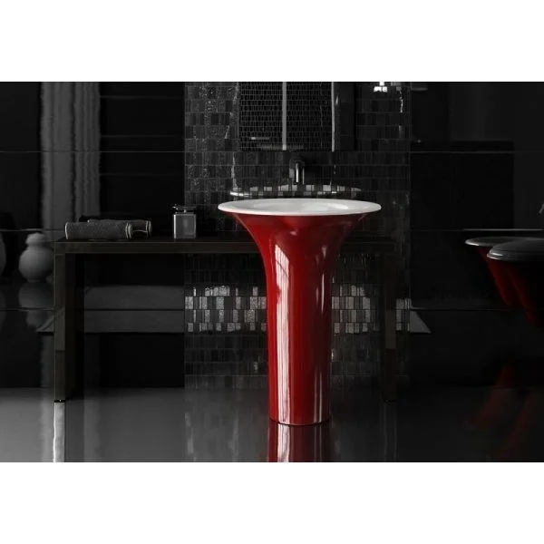 Раковина напольная на 65 см HATRIA SCULTURE EVENTO YXKXB5. Умывальник без отверстия перелива; без плоскости под смеситель. Сифон в комплекте . Выпуск в пол. Напольный монтаж. Цв. красный снаружи, белый изнутри.