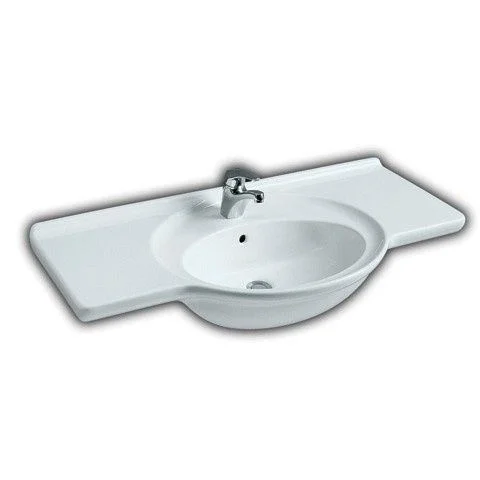 Раковина на 105 см HATRIA SHIRLEY YQ4801. Умывальник с одним центральным отверстием пол смеситель и отверстием перелива. Устанавливается на стену или мебель, может комплектоваться хромированным полотенцедержателем Y0PS01 и полкой Y0PK01 (в комплект не входит). Производитель Италия "HATRIA".