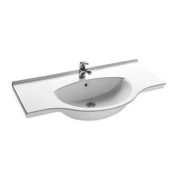 Раковина подвесная на 105 см HATRIA SOPHIE YU9001. Умывальник поставляется под смеситель на одно, по запросу на три отверстия. Может дополняться хромированным полотенцедержателем и подвесной консолью с полкой. Производитель Италия "HATRIA".