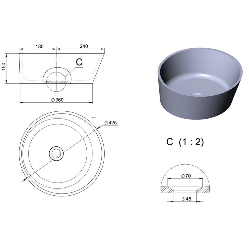Раковина HOLBI Almatea D=42,5 SC из искусственного камня, цветной мат 1.02.002.11.3
