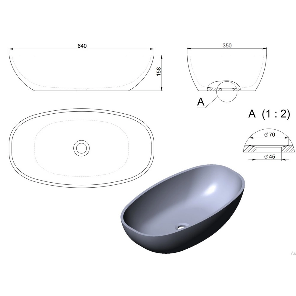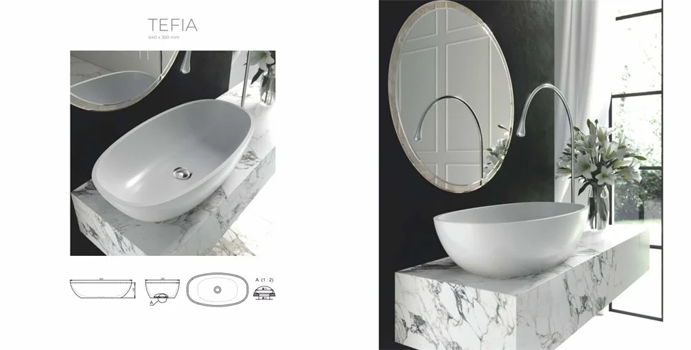 Раковина HOLBI Tefia 64х35 SCW из искусственного камня, белый мат 1.02.008.11.1