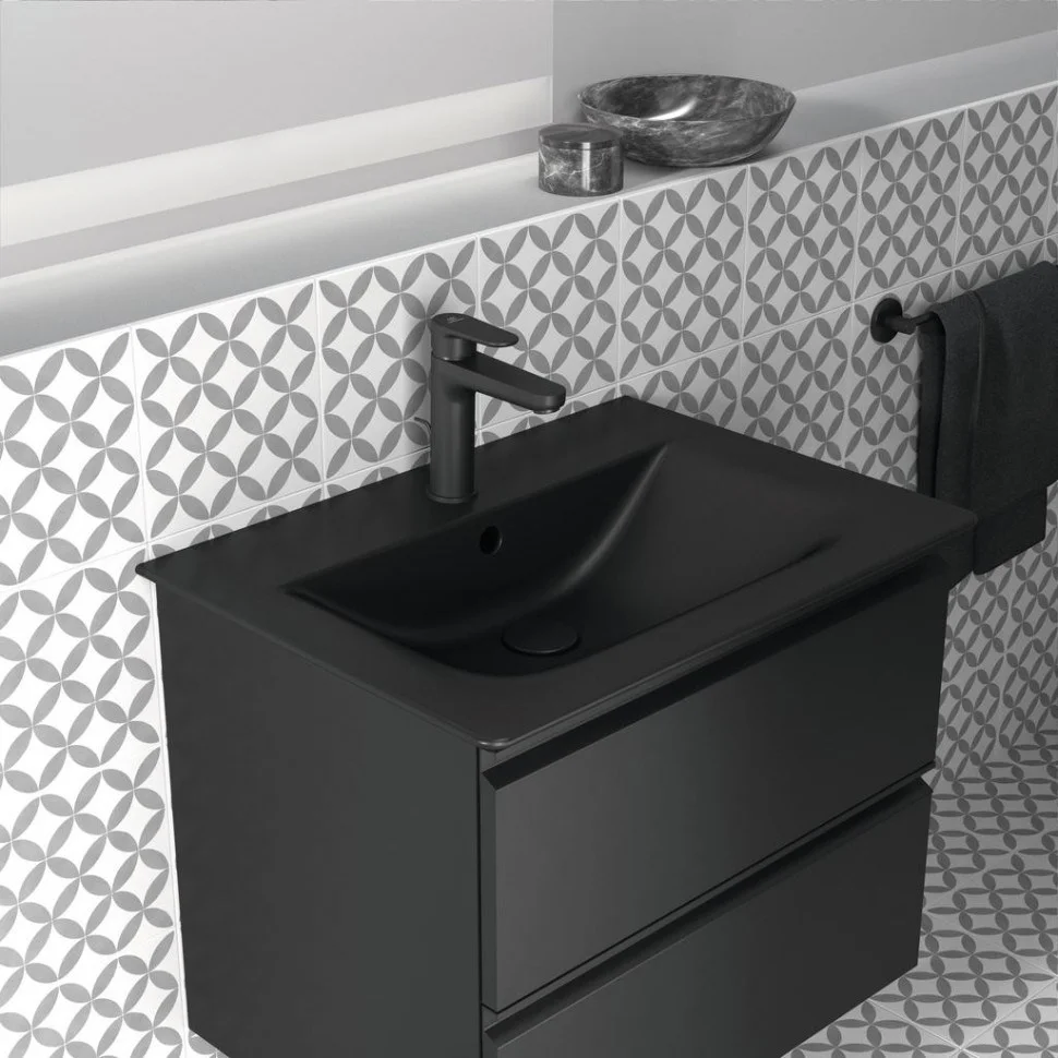 CONNECT AIR Vanity Умывальник 64 см, для монтажа соло с дизайн-сифоном или с подстольем CONNECT AIR; с отверстием под смеситель, с отверстием перелива. Без крепежа