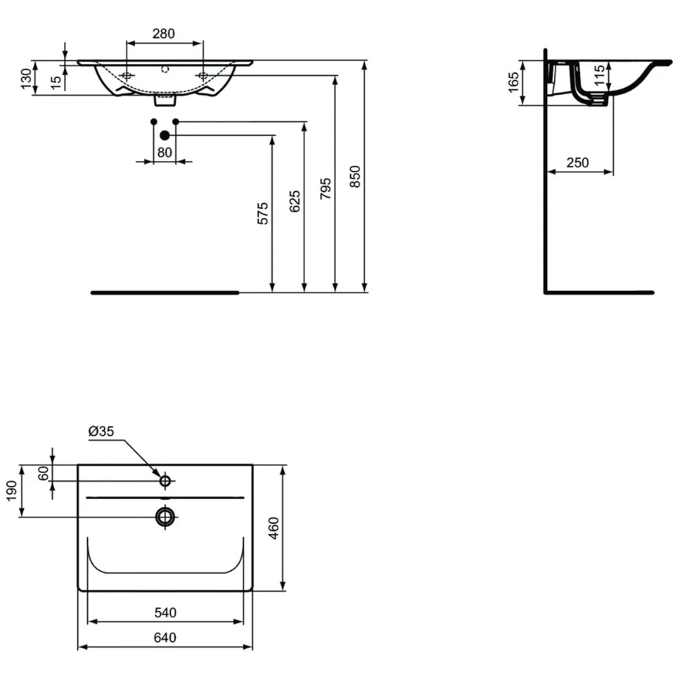 Раковина Ideal Standard CONNECT AIR E0289V3 64 см с отверстием под смеситель