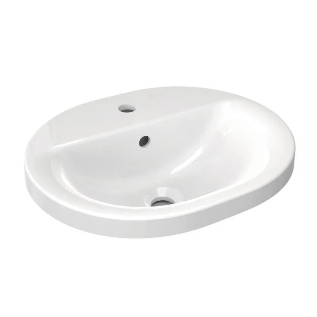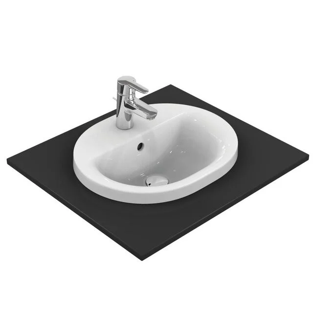 CONNECT Овальный встраиваемый на столешницу умывальник 48х40 см, с 1-м отверстием под смеситель, с отверстием перелива, с монтажным шаблоном, без крепежа